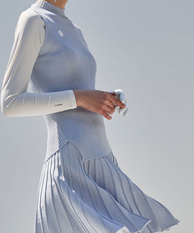 Knit skirt made of breathable, cool-feeling yarn With a sense of length that is not burdensome Flare design that can be coordinated with one piece. It is a strong type yarn made by giving elastic twist. It is a soft-touch knit skirt that minimizes skin friction. Special sewing with high difficulty to attach knitwear and functional leggings With underpants attached, comfortable and complete Experience Anelman's Golf Knit Skirt. Firmly holds the waist 50mm wide high elasticity inner band Fully recessed, it sits comfortably on your back.
